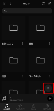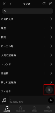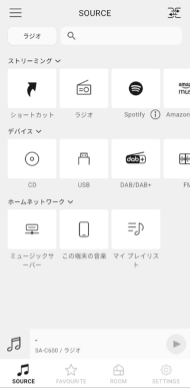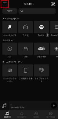 「SOURCE」画面の左上のボタンをタップし、検索したいストリーミングサービスを選択してください。