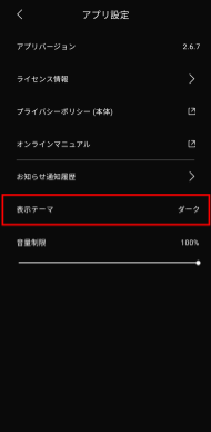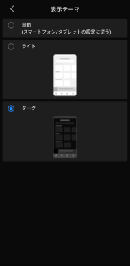 「アプリ設定」から「表示テーマ」を切り替えることができます。