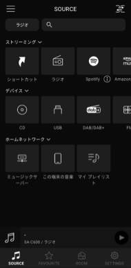 "ストリーミング"、"デバイス"、"ホームネットワーク" のカテゴリ毎に音源アイコンを並び替えができます。