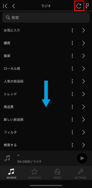「SOURCE」画面から[ミュージックサーバー]あるいは[この端末の音楽]をタップし、検索ボックスにキーワードを入力してください。